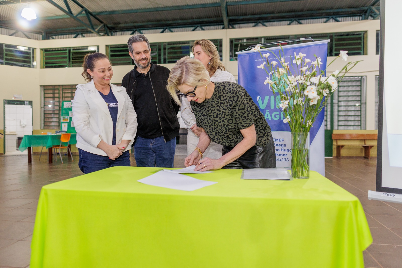 A assinatura ocorreu durante a Mostra Saberes em Cena, promovida pela escola. Além de ser restaurada e receber novo mobiliário e pintura, a biblioteca será equipada com mil livros, notebooks e um software para gerenciamento do acervo. A previsão é de que esteja pronta até março do ano que vem.