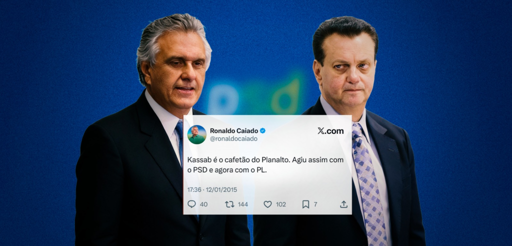 Não é por nada que certos políticos tipo Caiado Proxeneta são políticos desmoralizados e mentiros. O governador Ronaldo Caiado, o probo, publicou (em 2015) vários tuiítes criticando ferozmente o CAFETÃO DO PLANALTO. O sonho do ex-UDR é tentar uma chance de ser candidato a presidente da República. Na época dos tuítes, Caiado indignado porque Kassab, o CAFETÃO DO PLANALTO, então ministro das Cidades de Dilma Roousseff, cogitava refundar o Partido Liberal (PL), visando conseguir deputados e aumentar a base governista.