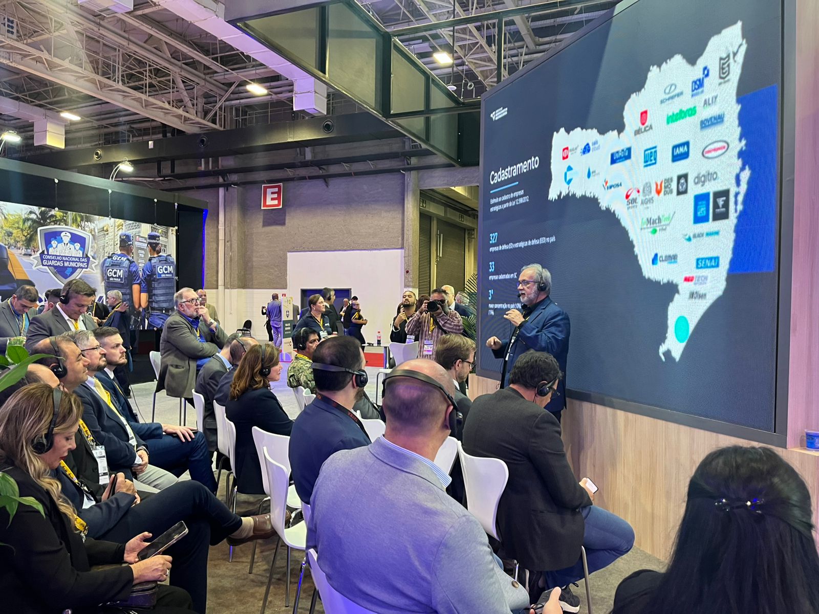 O presidente da Frente Parlamentar de Apoio à Indústria de Defesa e Segurança do RS, e da Comissão de Economia, Trabalho, Desenvolvimento Sustentável e Turismo da Assembleia Legislativa, deputado Gustavo Victorino (Republicanos), proferiu palestra nesta quarta-feira (15/4) na LAAD Security 2026, exposição que reúne empresas nacionais e internacionais que fornecem tecnologias, equipamentos e serviços para segurança pública, forças policiais e Forças Armadas no Brasil e na América Latina, que acontece até amanhã (16/4) no Transamerica Expo Center, em São Paulo.