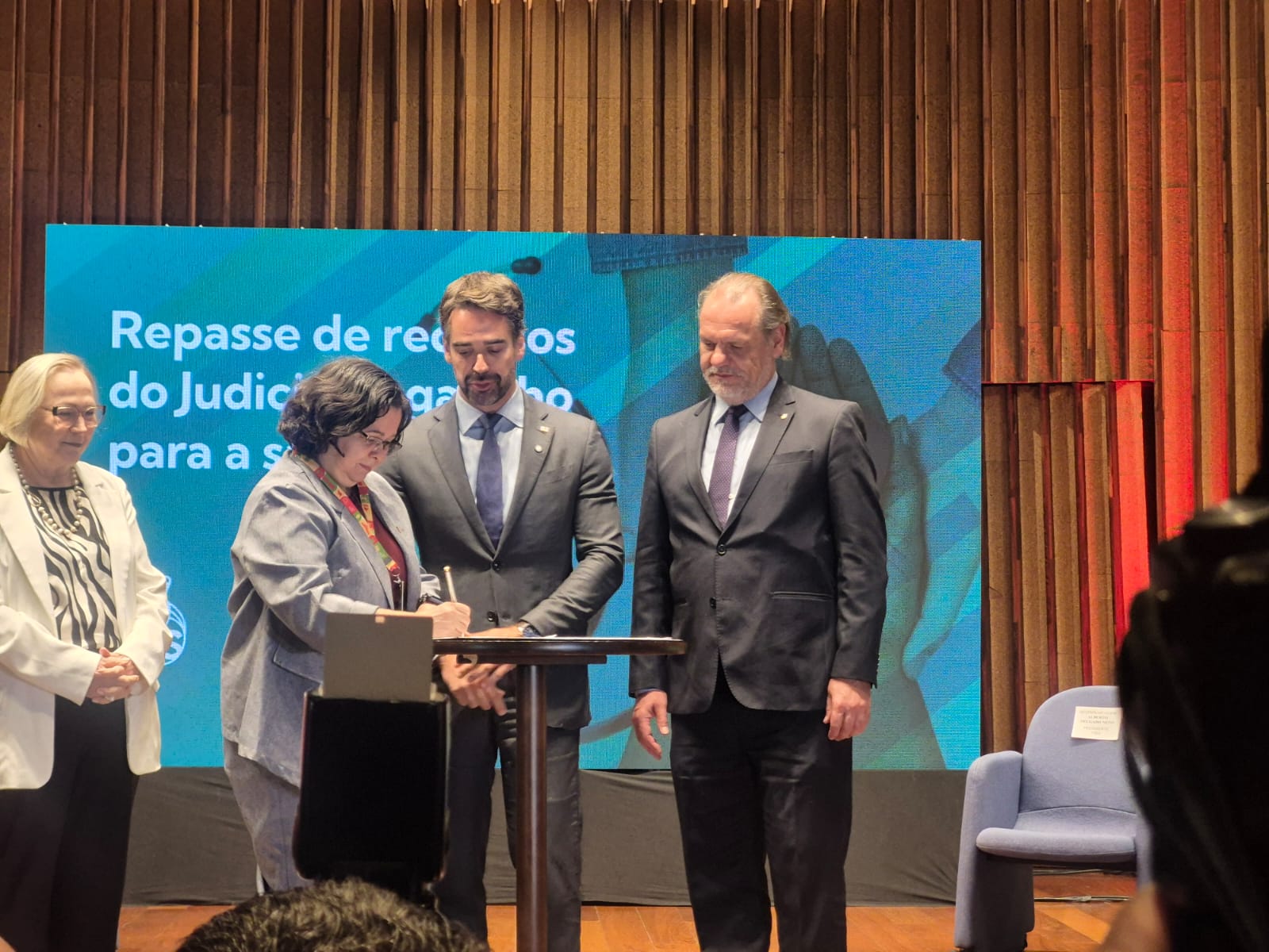 Os recursos serão destinados a investimentos em infraestrutura hospitalar, qualificação de serviços e ampliação da assistência em saúde. A secretária da Saúde, Arita Bergmann, acompanhou o ato, que ocorreu no Auditório Desembargador Osvaldo Stefanello, no Palácio da Justiça, em Porto Alegre.