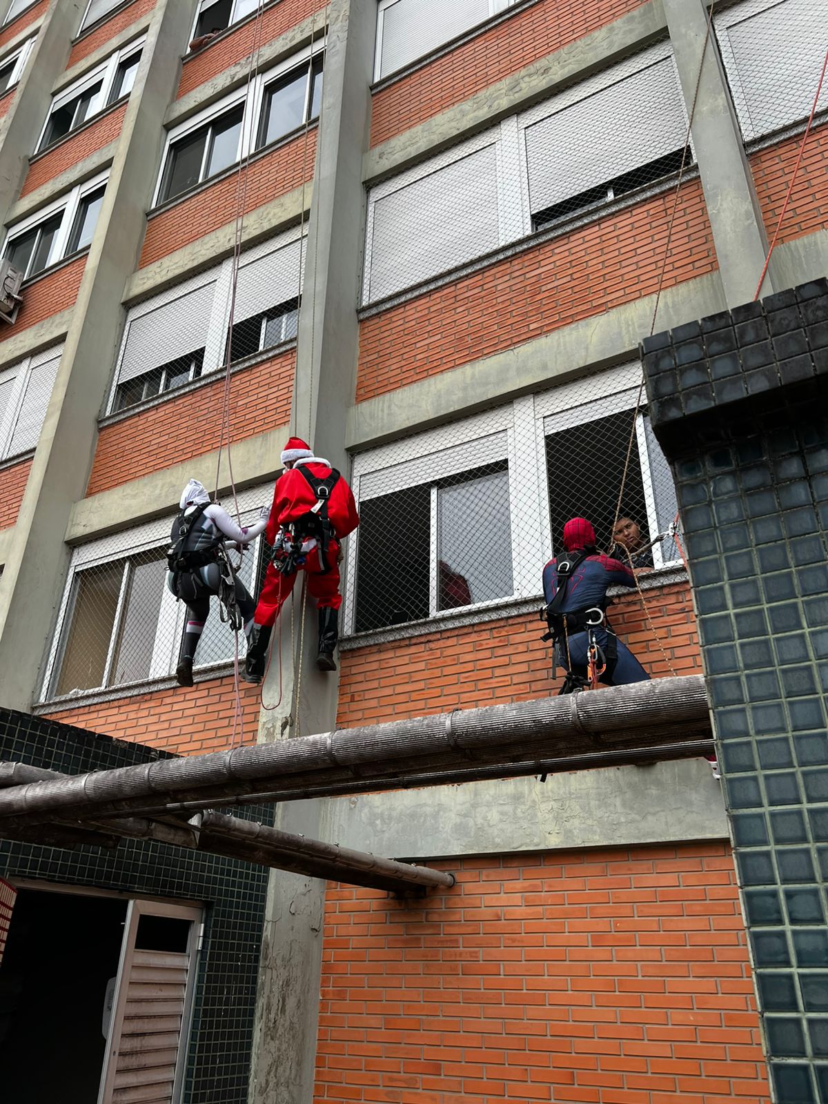 O Hospital Universitário de Canoas (HU de Canoas) transformou a manhã do último domingo (21) em um cenário de aventura e esperança. Em uma ação promovida pela Comissão de Humanização do hospital, o Papai Noel trocou o trenó pelas cordas e, acompanhado de um time de super-heróis, realizou uma descida de rapel pela fachada principal da instituição, encantando pacientes, familiares e colaboradores.