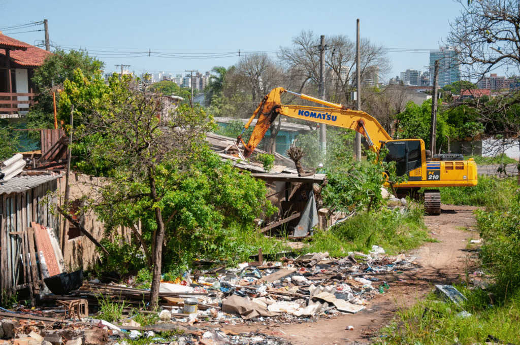 A Secretaria de Obras e Serviços Urbanos iniciou a demolição de moradias localizadas na área destinada à expansão do dique do bairro Mathias Velho. A medida tão esperada pela população de Canoas é altamente necessária para liberar o espaço e permitir o avanço das intervenções previstas no projeto de contenção.