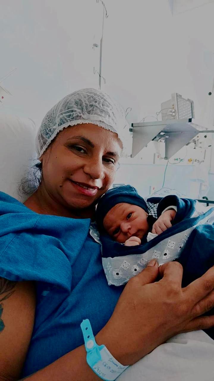 Ainda nas primeiras horas de vida, Ravi já tomou o primeiro banho e, no colo da mãe, iniciou a amamentação, demonstrando boa adaptação ao leite materno.