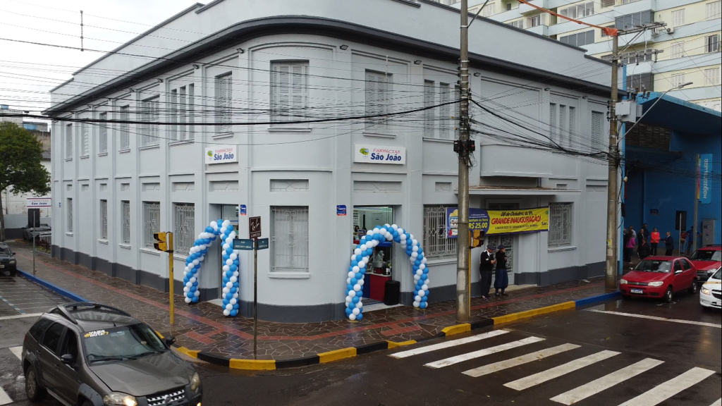 A Rede de Farmácias São João inaugurou na última terça-feira (08/10) em um prédio histórico de São Borja na fronteira oeste do Estado, uma nova loja na cidade conhecida como a “Capital Gaúcha do Fandango” e a “Terra dos Presidentes”. A nova loja está localizada na Avenida Presidente Vargas, esquina com a Rua Cândido Falcão, no antigo prédio do Banrisul, bem em frente à Praça XV de Novembro.